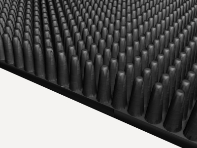 Estora amb base de cautxú, acabat superficial amb pues de cautxú de color negre, espessor total 16 mm, ús interior i exterior, enrotllable, de 60x40 cm. |