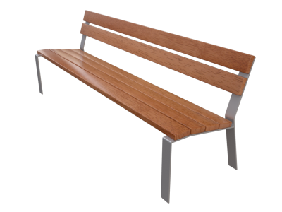 Banc, de 180x70x45 cm amb seient i respatller de fusta tropical i cos estructural d'acer, col·locació amb tac químic, volandera i cargol. | ||
