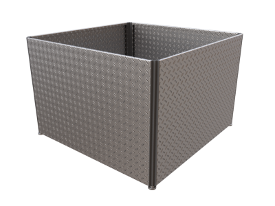 Jardinera de 120x120x80 cm, amb panells d'acer inoxidable AISI 304 i estructura de perfils d'acer amb protecció antioxidant i pintura de color negre.