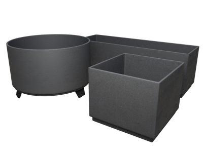 Jardinera quadrada de ferro colat, de 60x60x50 cm, pintada en color negre.