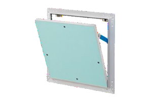 Trapa de registre gamma Accesso, Accesso Estàndard "PLADUR", de 200x200 mm, formada per marc d'alumini i porta de placa de guix laminat (1 amb baixa absorció superficial d'aigua H2, de 12,5 mm d'espessor), amb cargols de fixació a un bastidor d'alumini, d'obertura i tancament mitjançant pressió, amb suports de retenció en ambdós costats per limitar l'obertura, per a fals sostre continu de plaques de guix laminat. Inclús accessoris de muntatge. | ||