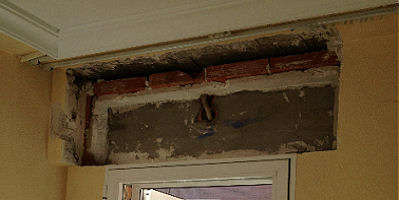 Rebut de bastidor per a caixa de persiana, amb pasta de guix de construcció. | ||
