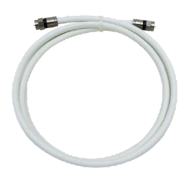 Latiguet coaxial de 1,5 m de longitud de color blanc, format per cable coaxial de 75 Ohm d'impedància característica mitjana, amb conductor central de coure dielèctric de polietilè cel·lular, pantalla de cinta d'alumini/polipropilè/alumini, malla de fils trenats de coure i coberta exterior de PVC de color blanc i connector mascle tipus "F" a compressió, en tots dos extrems. | ||
